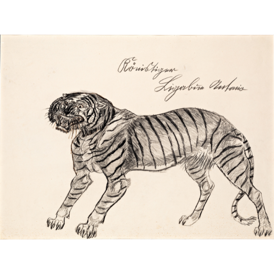 Ligabue represents his creatures not to idealize them, but to reveal their raw, instinctive nature. In this tiger, we read a metaphor for his own interior world: solitary, unpredictable, tormented. The drawing is not an exercise in style, but a self-portrait disguised as a feline—a silent confession emerging from every hesitant or forceful stroke.