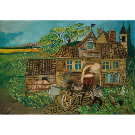 Dairy is therefore much more than a scene of everyday life. It is a vivid, personal fresco of the world in which Ligabue lived and which he loved—a world made of ancient gestures, resonant silences, and a nature that is always present, sometimes nurturing, sometimes domineering.